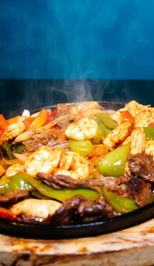 Super Charole El Muchacho Alegre. El Muchacho Alegre phone. Fish Shrimp Scallops steak or Chicken- on a bed of lettuce topped with cheese onions bell peppers red yellow peppers tomatoes.